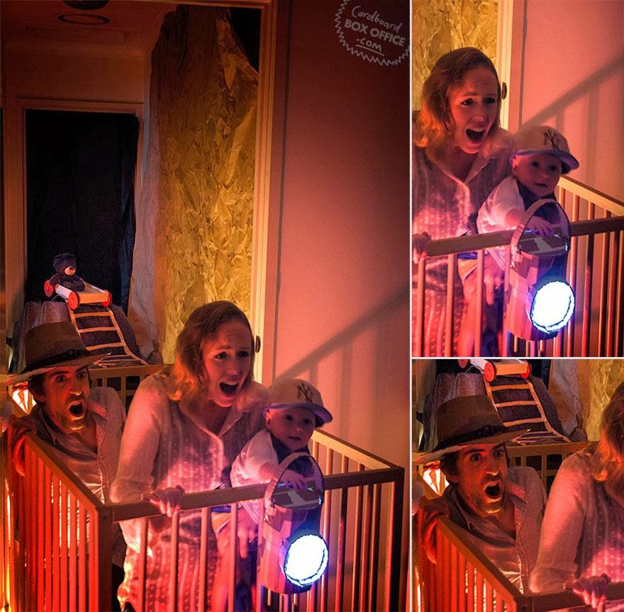 'Sometimes what you need to get creative is just a pile of cardboard boxes and a baby, who needs to be entertained. This is exactly what inspired Leon Mackie and Lilly Lang to recreate their favourite film scenes after moving into their new home.'